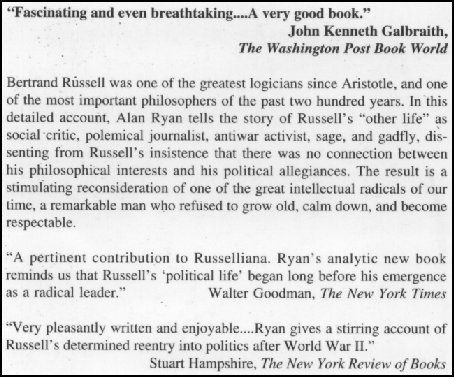 Bertrand Russell: a political life, by Alan Ryan (New York, Hill and Wang, c1988. xi+226 pp.)