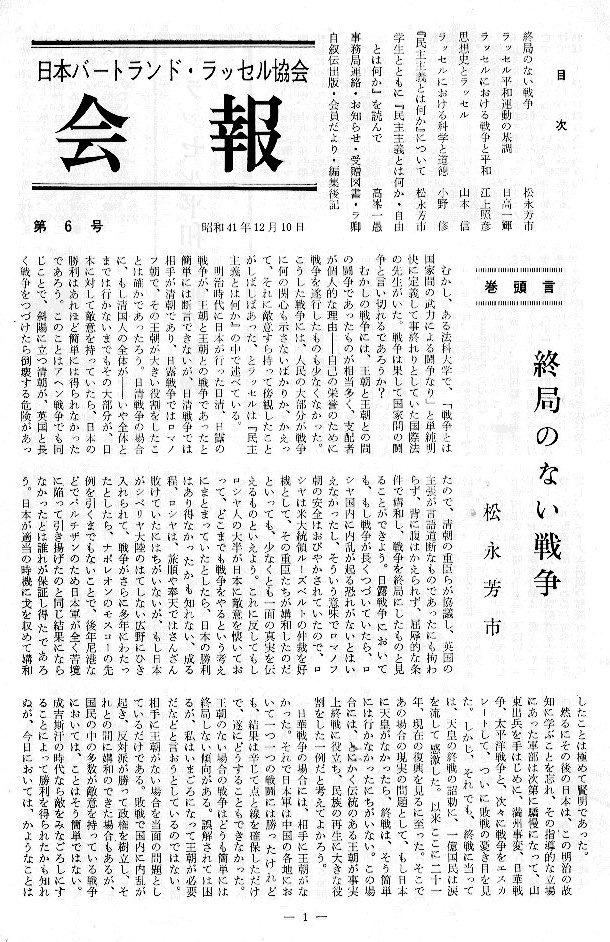 Bull. of The B. Russell Society in Japan, n.6: Dec. 1966