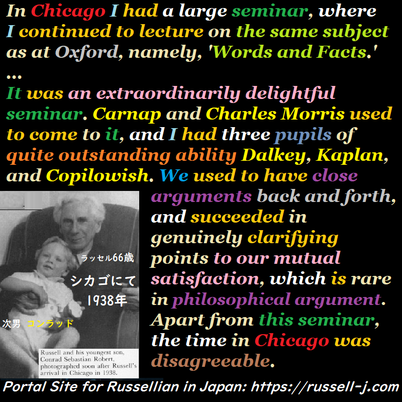 In Chicago I had a large seminar, where I continued to lecture on the same subject as at Oxford, namely, 'Words and Facts.' ...