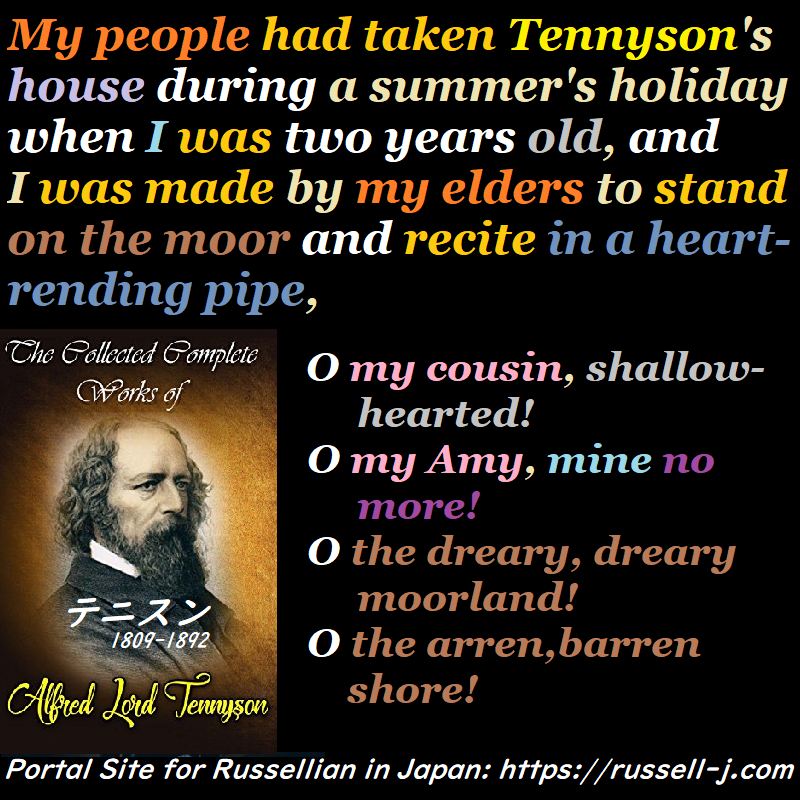 My people had taken Tennyson's house during a summer's holiday when I was two years old, and I was made by my elders to stand on the moor and recite in a heart-rending pipe,